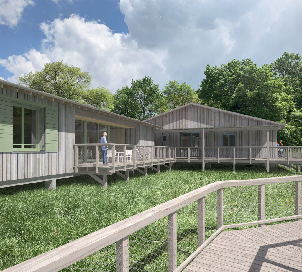 Ces habitats partagés sont destinés à des personnes de plus de 65ans qui souhaitent vivre autrement malgré la maladie. La volonté est de proposer un espace de vie dans lequel le bien-être des habitants et des personnels sont une priorité. Pour cela, l’accent est mis sur la qualité de vie avec des maisons construites avec des matériaux écologiques (paille, terre, bois). Chaque maison est destinée à accueillir 9 habitants.
